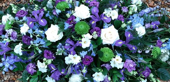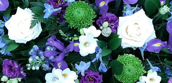 Blues, White and Green Casket Spray
