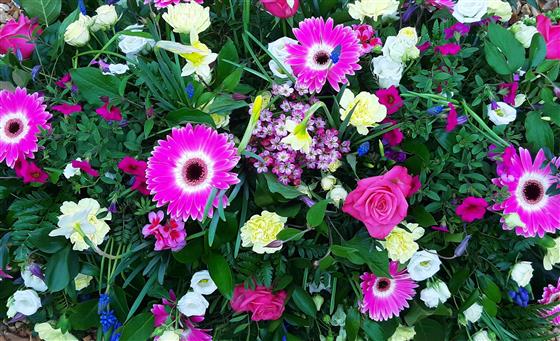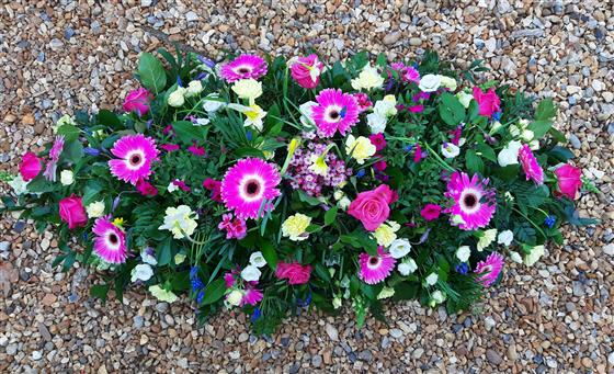 Casket Spray of Pink Gerbera and Spring Bulbs