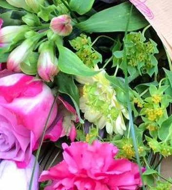 A lovely selection of beautiful fresh flowers with a mix of foliage.
