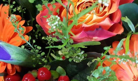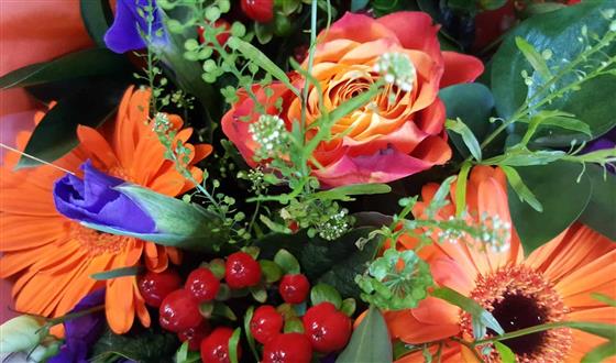 Not quite sure which flowers to choose? Let us choose a a pretty mix of seasonal orange & purple flowers for you