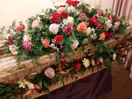 Please be aware that the garland on really works with wicker or bamboo caskets