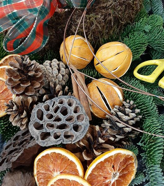 You will create your wreath using a pre-made moss base and a lovely fragrant mix of fresh pine and seasonal foliage. There will be a selection of decor for you to adorn your wreath so you can personalise it to your taste.